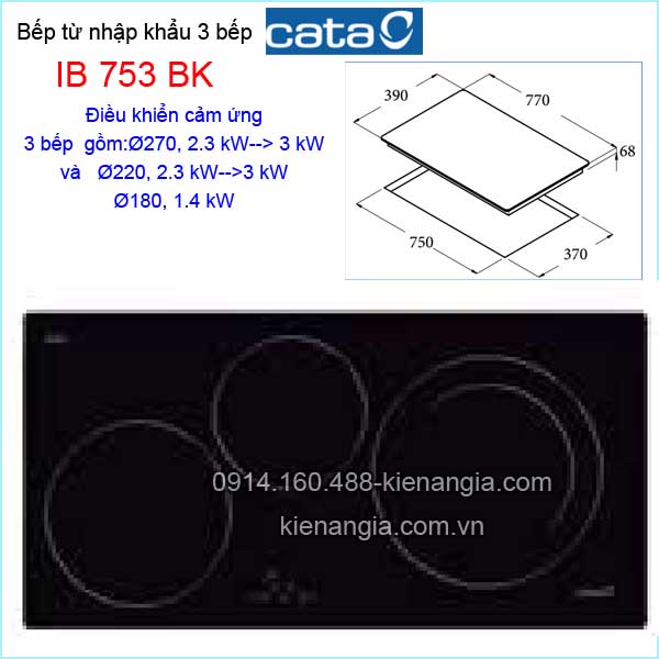 • Bếp từ Cata-Tây Ban Nha 3 bếp IB-753-BK chính hãng ,sang trọng,hiện đại,chiết khấu cao KIẾN AN GIA-0914.160.488