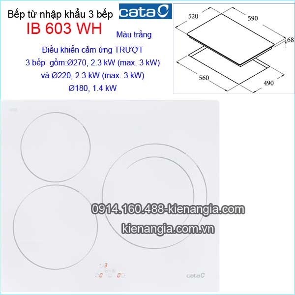 • Bếp từ màu trắng Cata-Tây Ban Nha 3 bếp IB-603-WH chính hãng ,sang trọng,hiện đại,chiết khấu cao KIẾN AN GIA-0914.160.488