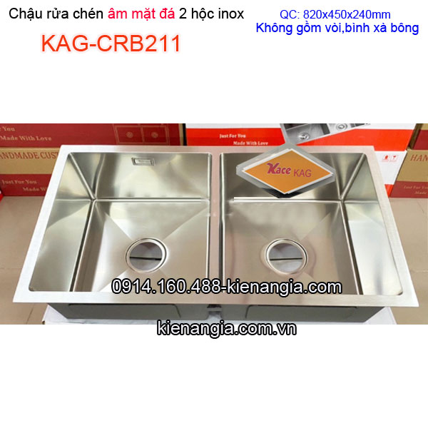 • Chậu âm mặt đá 2 hộc đều inox sus304 đúc 82x45cm KAG-CRB211,chậu rửa bát cao cấp inox sus304 đúc nguyên khối sang trọng ,nhiều mẫu mã ,qui cách ,giá tốt KIẾN AN GIA-0914.160.488