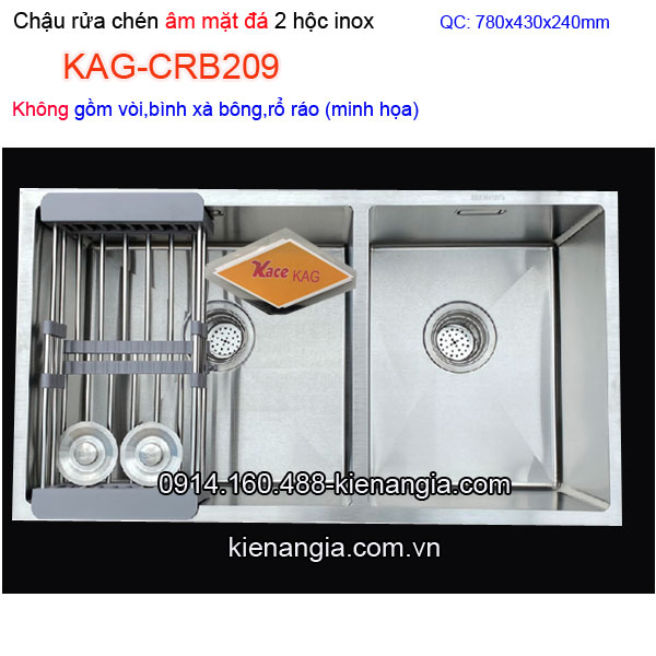 • Chậu âm mặt đá 2 hộc lớn nhỏ inox sus304 đúc 78x43cm KAG-CRB209,chậu rửa bát cao cấp inox sus304 đúc nguyên khối sang trọng ,nhiều mẫu mã ,qui cách ,giá tốt KIẾN AN GIA-0914.160.488