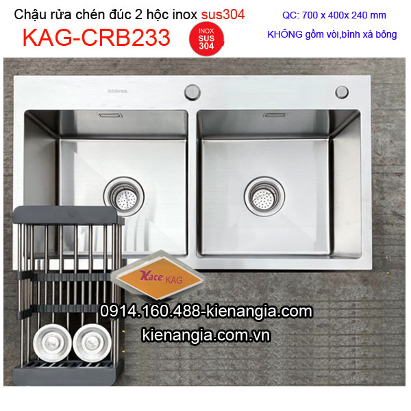 • Chậu inox 304 đúc 2 hộc đều 70x40cm KAG-CRB233,chậu rửa bát cao cấp inox sus304 đúc nguyên khối sang trọng ,nhiều mẫu mã ,qui cách ,giá tốt KIẾN AN GIA-0914.160.488