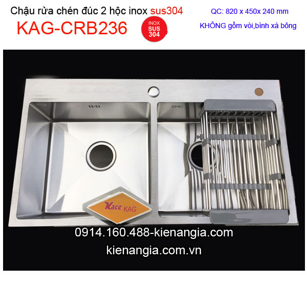 • Chậu inox 304 đúc 2 hộc đều 82x45cm KAG-CRB236,chậu rửa bát cao cấp inox sus304 đúc nguyên khối sang trọng ,nhiều mẫu mã ,qui cách ,giá tốt KIẾN AN GIA-0914.160.488