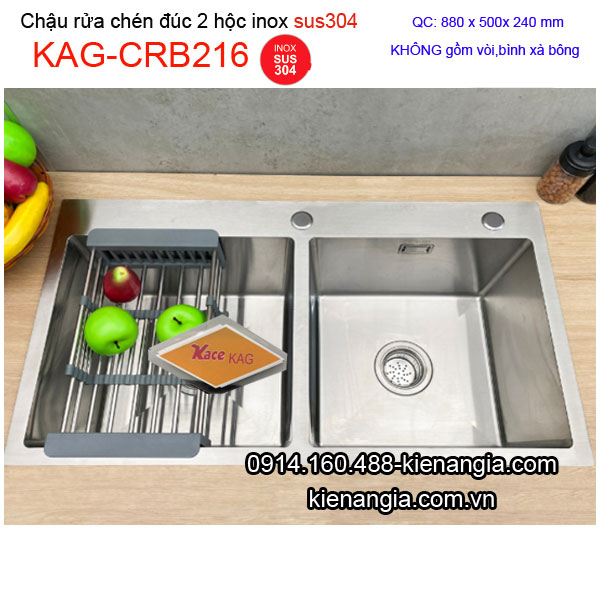 • Chậu inox 304 đúc 2 hộc đều 88x50cm KAG-CRB216,chậu rửa bát cao cấp inox sus304 đúc nguyên khối sang trọng ,nhiều mẫu mã ,qui cách ,giá tốt KIẾN AN GIA-0914.160.488