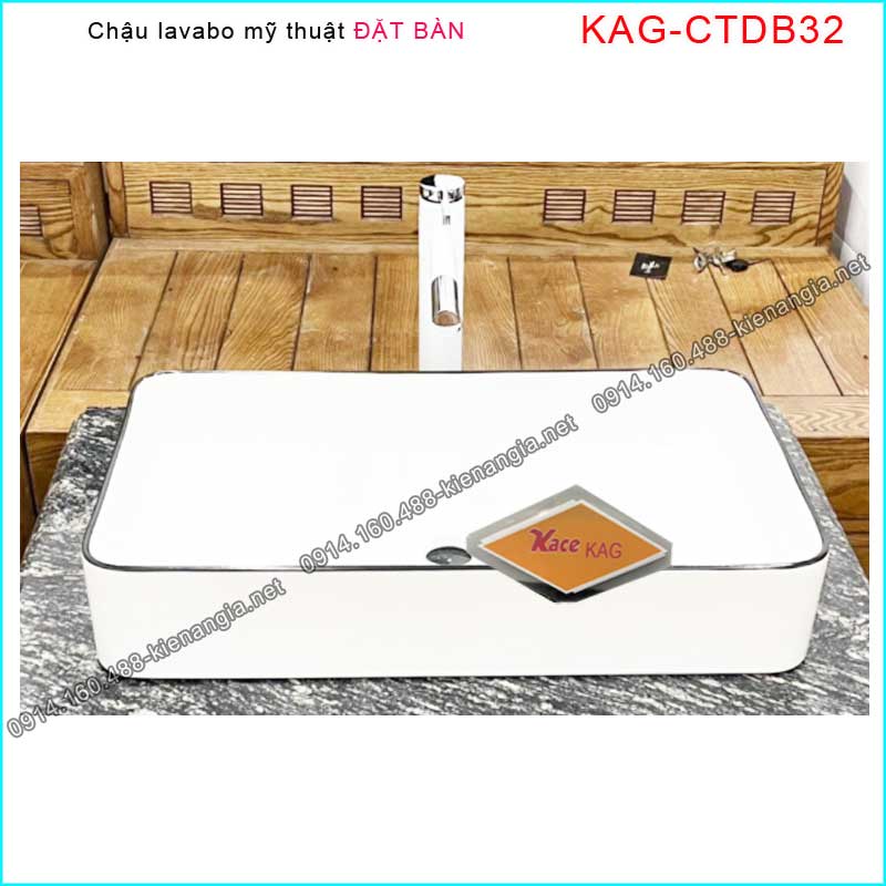 Chậu lavabo chữ nhật Trắng viền đặt bàn KAG-CTDB32