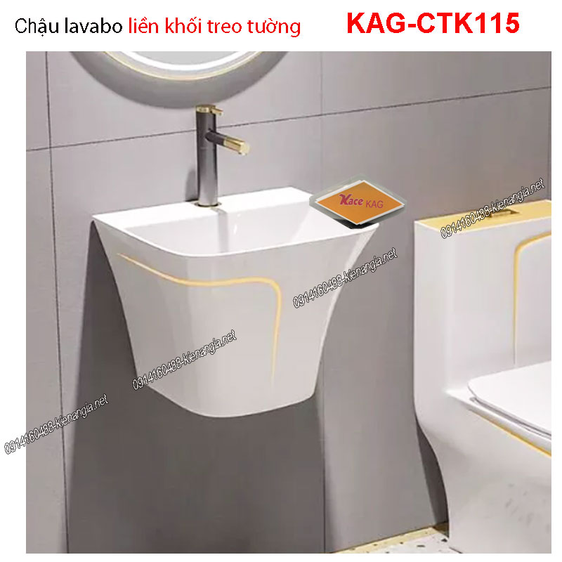 Chậu lavabo liền khối TRẮNG viền vàng treo tường  KAG-CTK115