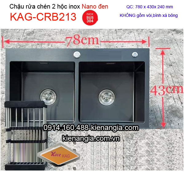 • Chậu Nano đen 2 hộc đều 78x43cm inox304 KAG-CRB213,chậu rửa bát cao cấp inox sus304 đúc nguyên khối phủ Nano kháng khuẩn,bề mặt khó trầy xước,sang trọng ,nhiều mẫu mã ,qui cách ,giá tốt KIẾN AN GIA-0914.160.488