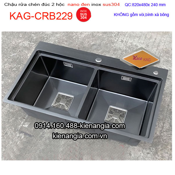 Chậu Nano đen 2 hộc đều bậc thanh 82x48cm inox304 KAG-CRB229