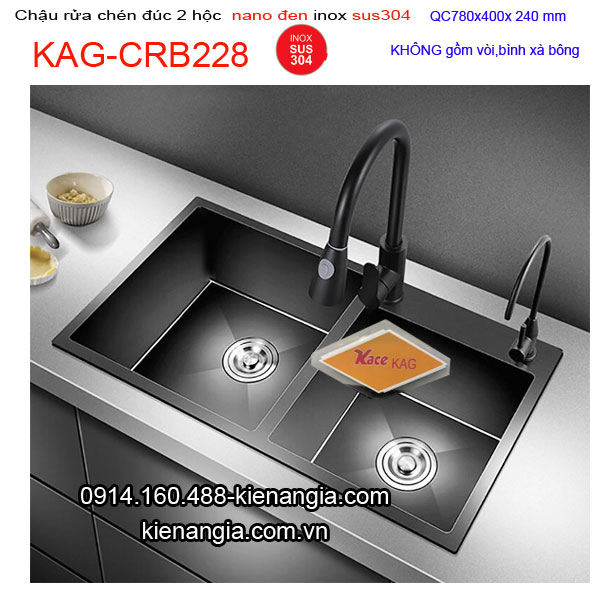 • Chậu Nano đen 2 hộc lệch 78x40cm inox304 KAG-CRB228,chậu rửa bát cao cấp inox sus304 đúc nguyên khối phủ Nano kháng khuẩn,bề mặt khó trầy xước,sang trọng ,nhiều mẫu mã ,qui cách ,giá tốt KIẾN AN GIA-0914.160.488