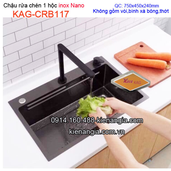 • Chậu rửa chén 1 hộc NANO đen 75x45cm KAG-CRB117 chậu đúc cao cấp,sang trọng.Bộ xả thoát nhanh,chống hôi .Có nhiều mẫu,nhiều kích thước tại KIẾN AN GIA-0914.160.488