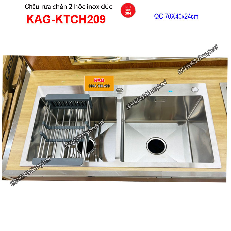 • Chậu rửa chén 2 hộc inox sus304 70x40cm KAG-KTCH209,chậu inox đúc ,đẹp,bền giá tốt KIẾN AN GIA-0914160488.XEM CLIP SẢN PHẨM TẠI ĐÂY