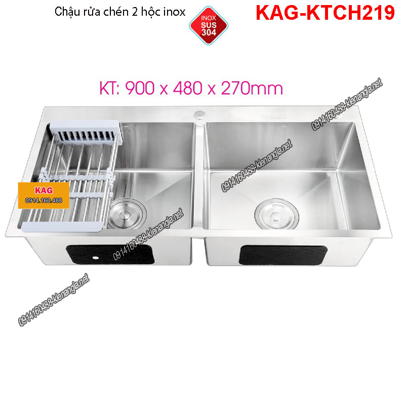 • Chậu rửa chén 2 hộc inox sus304 không sơn 90x48 cm KAG-KTCH219 đẹp,lòng chậu sâu không văng nước,giá tốt 0914160488