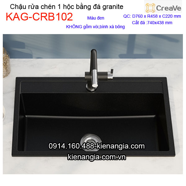 Chậu rửa chén đá granite 1 hộc Vuông CREAVE KAG-CRB102