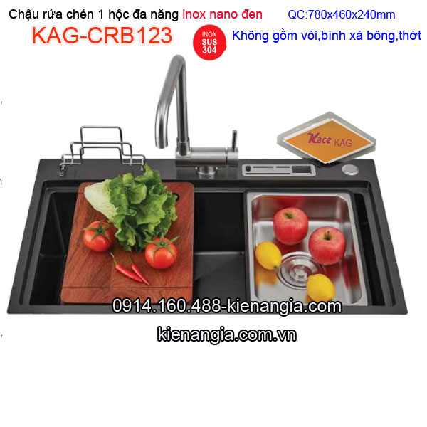 • Chậu rửa chén Nano đen 1 hộc 78x46cm đa năng inox 304 KAG-CRB123,chậu rửa bát inox sus304 đúc nguyên khối phủ Nano đen kháng khuẩn ,sang trọng ,hiện đại ,không trầy xước ,lòng chậu sâu không văng nước,giá tốt KIẾN AN GIA-0914.160.488