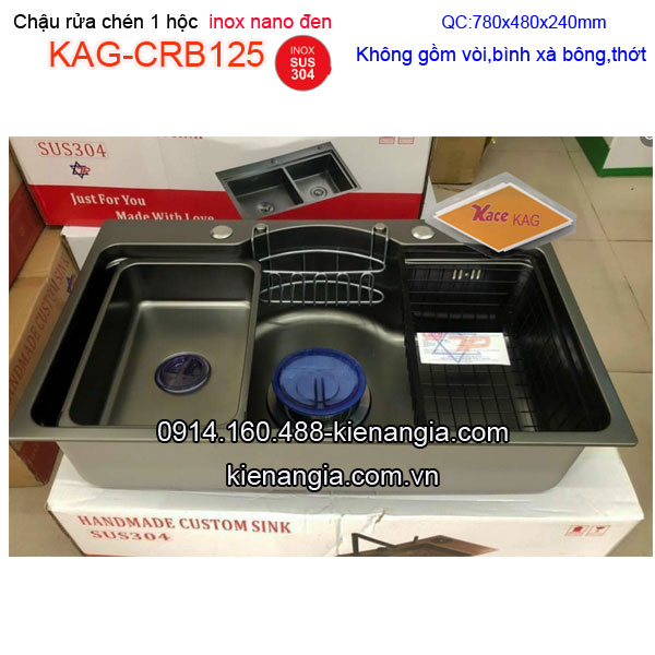 • Chậu rửa chén Nano đen 1 hộc 78x48cm đa năng inox 304 KAG-CRB125,chậu rửa bát inox sus304 đúc nguyên khối phủ Nano đen kháng khuẩn ,sang trọng ,hiện đại ,không trầy xước ,lòng chậu sâu không văng nước,giá tốt KIẾN AN GIA-0914.160.488