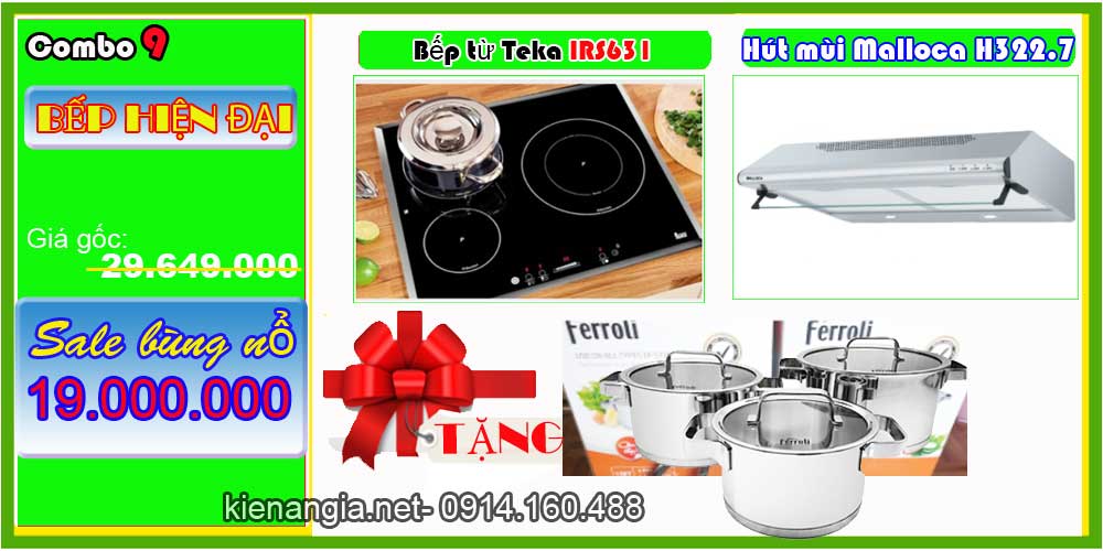 • Khuyến mãi bộ bếp TEKA-MALLOCA KAG-Combo 9 Bếp Hiện đại ,Sale bùng nổ,sale cực sốc,chương trình bàn hàng tri ân khách hàng với giá ưu đãi ,cơ hội Khách hàng trang bị mới trọn bộ Bếp tại KIẾN AN GIA-0914.160.488 vì cuộc sống tươi đẹp,hạnh phúc do các thương hiệu bếp hàng đầu Sevilla,Teka,Malloca.Anpha,Rinnai....