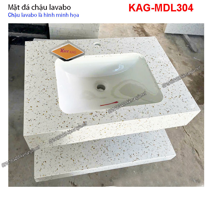 Mặt đá trắng vân màu chậu lavabo KAG-MDL306