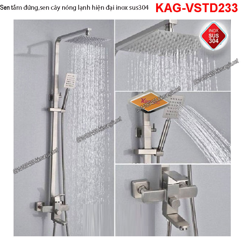 Sen tắm đứng vuông nóng lạnh INOX SUS304 KAG-VSTD233