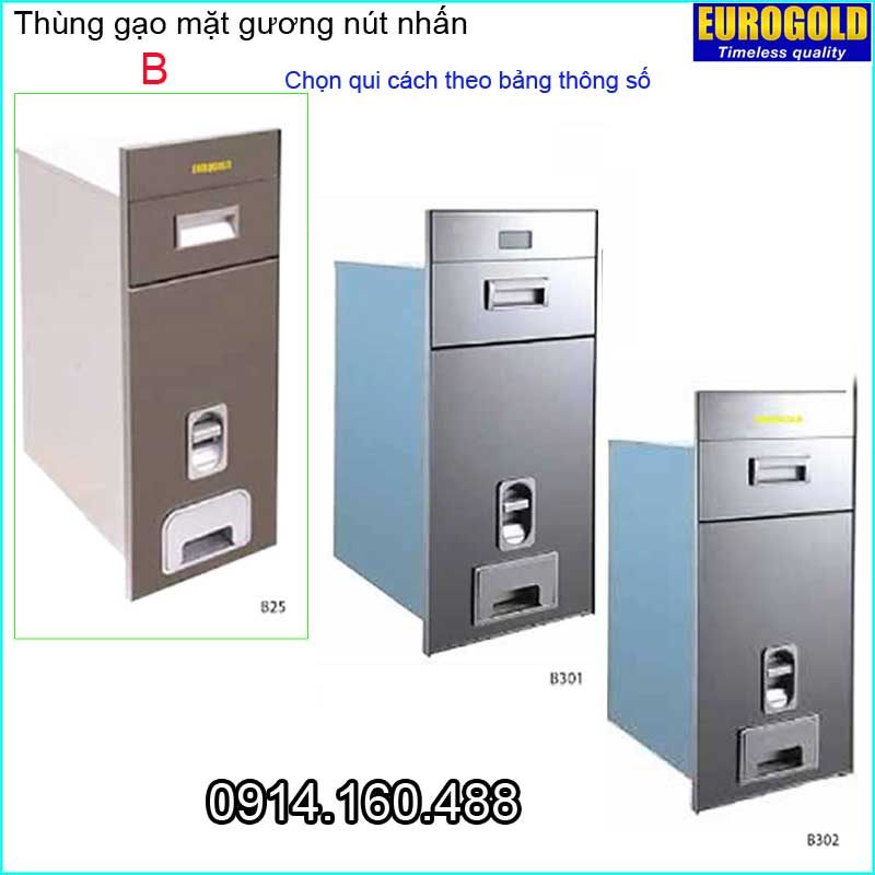 Thùng gạo mặt gương nút nhấn EUROGOLD-B