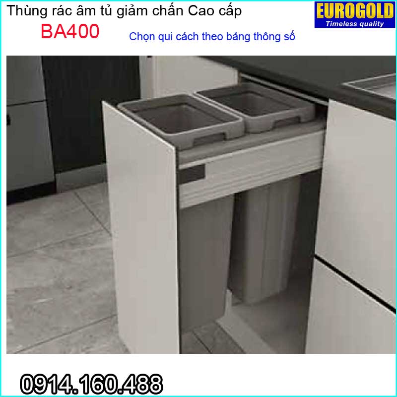 Thùng rác âm tủ ray giảm chấn EUROGOLD-BA400