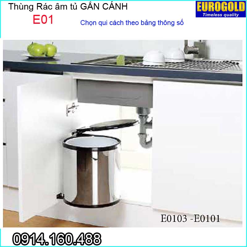 Thùng rác tròn âm tủ gắn cánh EUROGOLD-E0101-103
