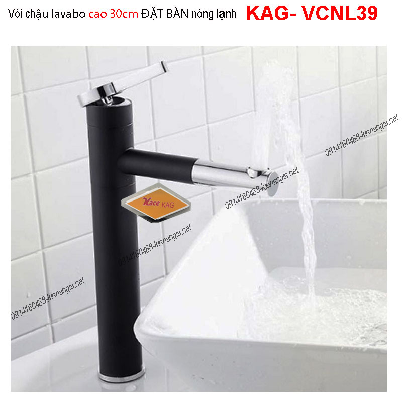 Vòi chậu lavabo 30cm Đen ĐẦU XOAY 360 KAG-VCNL39