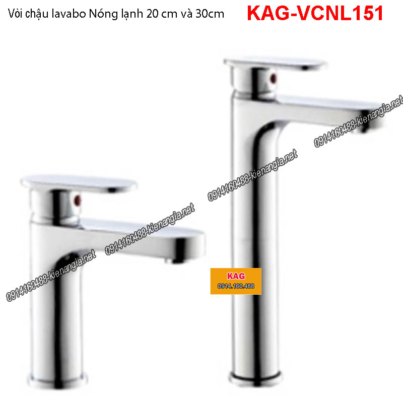 Vòi chậu lavabo nóng lạnh cao 20cm,30cm KAG-VCNL151