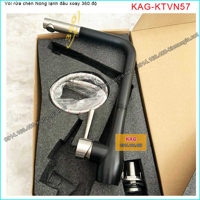 Vòi rửa chén nóng lạnh đầu xoay 360 độ đen KAG-KTVN57