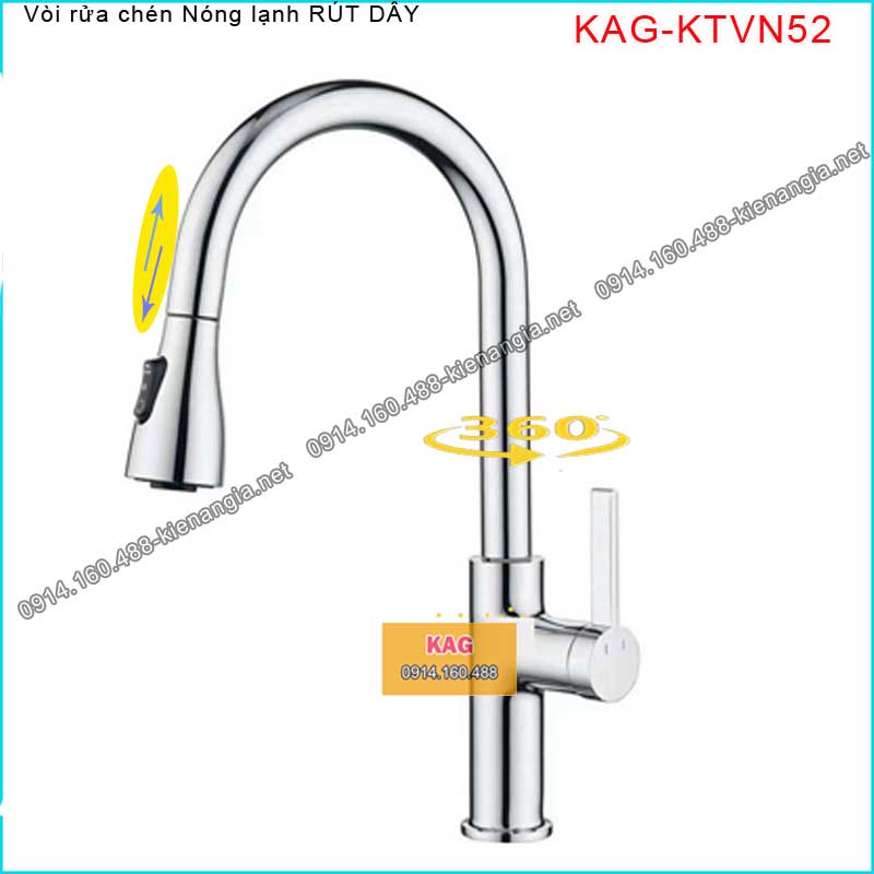 Vòi rửa chén Nóng lạnh RÚT DÂY Chrome bóng KAG-KTVN52